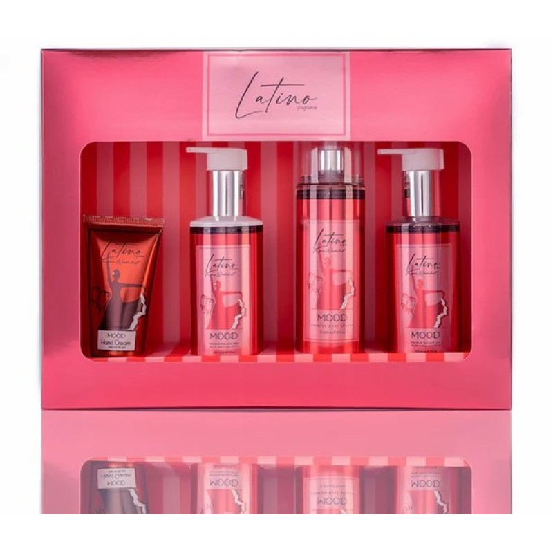 MOOD Latino woman set ( Body Splash 220 ml - Hand Cream 50 ML - Shower Gel 200 ML - Body Milk 200 ML), curated to pamper and indulge your senses from head to toe. This exquisite set includes three essential products designed to nourish, refresh, and moisturize your skin, leaving you feeling rejuvenated and beautifully scented. MOOD Latino woman set contains: